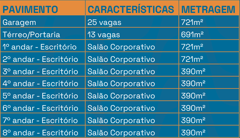 um total de dez pavimentos, sendo sete pisos corporativos,