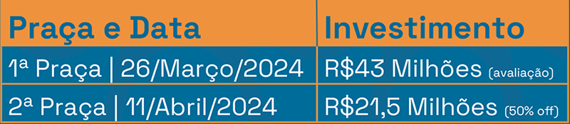 Primeira Praça: 26/03/2024 – Valor original de R$43 Milhões